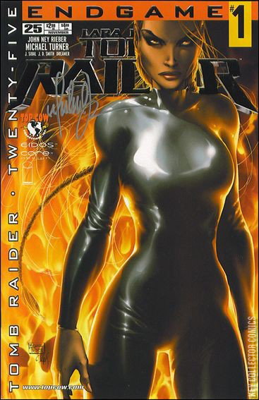 Tomb Raider's 25th issue extravaganza arrives as special guest penciler Michael Turner joins forces with John Ney Rieber to present the monumental issue of Tomb Raider as Top Cow's Endgame crossover kicks off. It all begins when the charred remains of a long-lost Native American settlement lure Lara Croft to New York City the home of Sara Pezzini and the Witchblade, and it ends with - the death of Lara Croft?