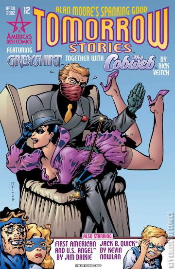 AMERICA'S BEST COMICS' first crossover story appears this issue! Alan Moore writes and Rick Veitch illustrates a tasty team-up--Greyshirt and Cobweb--in a dynamite double length story! Also running around this issue are kid scientist Jack B. Quick and, heaven help us, the First American!