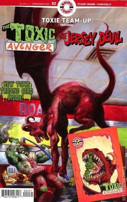Continuing the Toxic Avenger’s tour of what we laughingly call the AHOY Universe! Following his meeting with Jesus Christ, the Avenger returns to his roots for an epic brawl with the Jersey Devil in—where else?—a sinister diner. Script by the Garden State’s own Stuart Moore (Captain America for Dummies) with art by midwestern interloper Ryan Kelly (Local, Dead Boy Detectives) and cover by master Toxie artist Fred Harper!