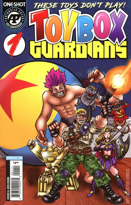 HEROIC SOULS TRAPPED IN PLASTIC PLAYTHINGS! SMALL-SCALE FIGHTERS IN A HIGH-STAKES WAR! From another dimension, the souls of warriors have come in pursuit of an ancient enemy that has now entered our world. But to battle their foe, they need physical forms, and what their spirits find to inhabit...are children's toys. Now they must use these new bodies to protect the innocent as they fight the age-old evil! It's combat on an epic (3 3/4") scale, co-created and cowritten by Antarctic Press founder and Ninja High School creator Ben Dunn!
