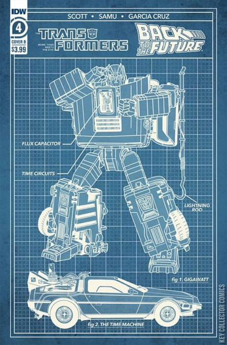 Outmatched by the Decepticons, running on empty, and on the ropes, Marty McFly and the Autobot Gigawatt show why nobody calls them chicken! Will the final confrontation be in Marty's future, or will he and his companions make it back to fix the timestream before the Decepticons win? Find out in the heaviest issue of the whole series!