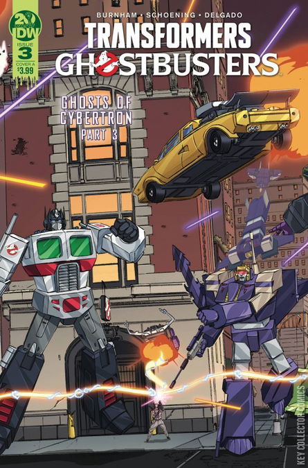 'GHOSTS OF CYBERTRON', PART 3! The 35th anniversary meeting between Transformers and Ghostbusters continues! Ectotron came to Earth and found a situation far more complicated than he was expecting, which means Optimus Prime is going to need to be brought into the picture. But until Optimus can arrive, Ectotron takes the opportunity to join the Ghostbusters on a case and observe the paranormal. And don't forget about the ghost of Starscream! Prime gets slimed! Featuring a brand-new Autobot-Ectotron-and other crossover surprises! Written and illustrated by the long-time fan-favorite Ghostbusters creative team of Erik Burnham, Dan Schoening, and Luis Antonio Delgado! Five action-packed interconnecting covers from series artist Dan Schoening! The series will also include covers from superstar artists like Nick Roche, Alex Milne, Paulina Ganucheau, Priscilla Tramontano, and more!