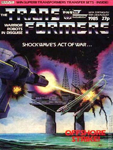 Shockwave captures an oil-drilling platform, then is challenged by Megatron for command of the Decepticons. Reprints The Transformers (US) #6