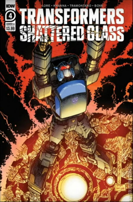 Shattered Glass isn't your average Transformers tale... "Shards" is the story of the ongoing battle between the power-hungry Autobot autocrats and the freedom-fighting Decepticon laborers. Join author Danny Lore (James Bond, King in Black: Captain America, Champions) in exploring this fractured alternate universe just before it shatters. In issue #4, Goldbug, a vicious warlord formerly known as Bumblebee, must become the leader that Optimus Prime failed to be as he fights Decepticons and commands Autobots to extract information from Statscreamm.