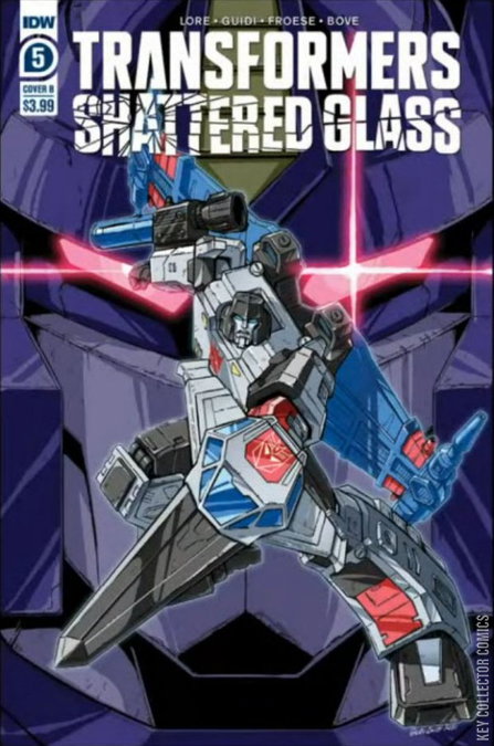 Shattered Glass isn't your average Transformers tale... "Shards" is the story of the ongoing battle between the power-hungry Autobot autocrats and the freedom-fighting Decepticon laborers. Join author Danny Lore (James Bond, King in Black: Captain America, Champions) in exploring this fractured alternate universe just before it shatters. In issue #5, Jetfire's loyalties are tested when Goldbug asks him to commit the ultimate sacrifice in the name of the Autobots. His decision results in a Cybertron-shattering event and an epic conclusion to "Shards."