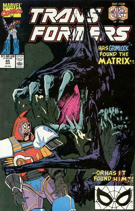 Early comic book version of the famous transforming robots. The Matrix Quest, the search for the creation matrix, continues, as in this chapter, the Autobots follow the trail to the creation matrix and are led to an abandoned station on a planet. And when they are captured by Decepticons, a deadly new threat emerges in Dark Creation. Issue also has profile pages on Spinister and Windsweeper Decepticons.