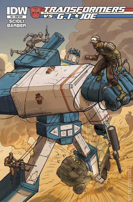 CYBERTRON INFESTED! The Transformers’ homeworld is crawling with tiny green invaders from the planet Earth—the G.I. JOE team! Also this issue—Funeral for a Friend. Many AUTOBOTS and G.I. JOE soldiers have fallen in the line of duty—but you've never seen a send-off like this!