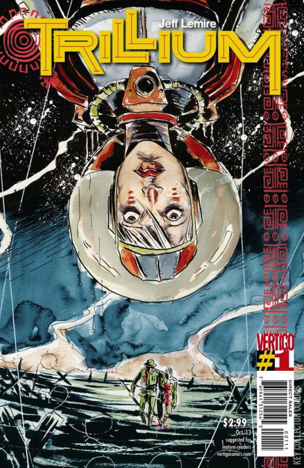 It's the year 3797, and botanist Nika Temsmith is researching a strange species on a remote science station near the outermost rim of colonized space. It's the year 1921, and renowned English explorer William Pike leads an expedition into the dense jungles of Peru in search of the fabled "Lost Temple of the Incas," an elusive sanctuary said to have strange healing properties. Two disparate souls separated by thousands of years and hundreds of millions of miles. Yet they will fall in love and, as a result, bring about the end of the universe. Even though reality is unraveling all around them, nothing can pull them apart. This isn't just a love story; It's the LAST love story ever told. Trillium is an 8-issue series that combines rich historical adventure and mind-bending science fiction into a sprawling, unconventional love story by Jeff Lemire (SWEET TOOTH, CONSTANTINE, ANIMAL MAN). This amazing miniseries kicks off with 28-pages of story in a flip-book with two covers and two separate but connected stories!