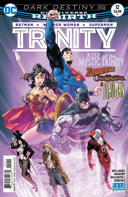 “DARK DESTINY” part one! Superman, Batman and Wonder Woman must turn to the mystic trinity of Dead Man, Zatanna and John Constantine when Red Hood, Artemis and Bizarro are sacrificed into the depths of the Pandora Pits by Circe and Ra’s al Ghul.