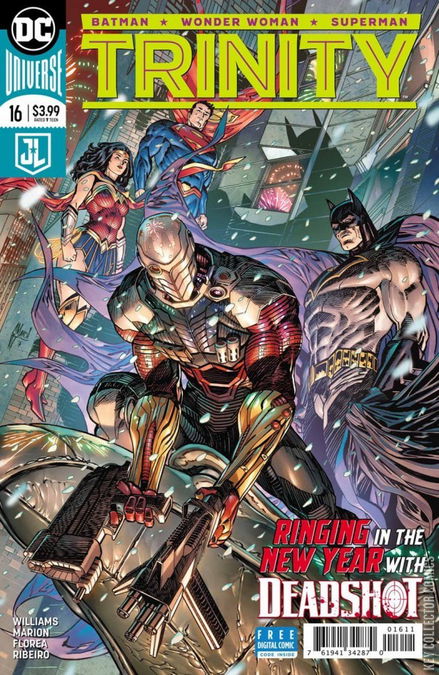 OLD ACQUAINTANCE It’s New Year’s Eve, and as the snow falls on New York City our Trinity reunites to save the life of someone completely unexpected—one of the DC Universe’s coldest killers: Deadshot!