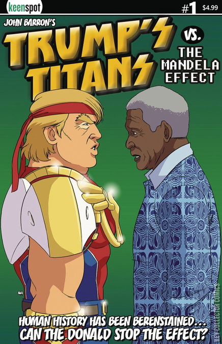President Donald J. Trump is now the most powerful superhero in the universe and the leader of the greatest super team in history - but for how long? History is quickly being changed by something called The Mandela Effect; the universe is being Berenstained! All the things we remember are now slightly different - the way names are spelled, the way company logos look, and even scenes from Star Wars and James Bond movies! The Mandela Effect is the greatest threat our country has ever known, and only President Trump can stop it! Trump's Titans return in an all-new #1, because #4s are for losers!
