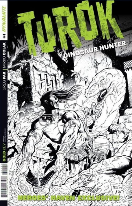 THE GOLD KEY UNIVERSE BEGINS HERE! Classic Characters by some of Comics Hottest Creators! - Magnus, Solar, Turok and Dr. Spektor! Dynamite is proud to present an all-new adventure ongoing from superstar GREG PAK (Batman/Superman, World War Hulk) and incredible artist MIRKO COLAK (Red Skull: Incarnate, Conan)! Shunned from his tribe, a young Native American named Turok fights to survive, making a lonely life for himself in the unforgiving forest. But his hard-won cunning and survival skills face the ultimate test when man-eating THUNDER LIZARDS attack his people! Why are dinosaurs here? How have they survived? And will Turok use his abilities to save a society that's taken everything away from him?