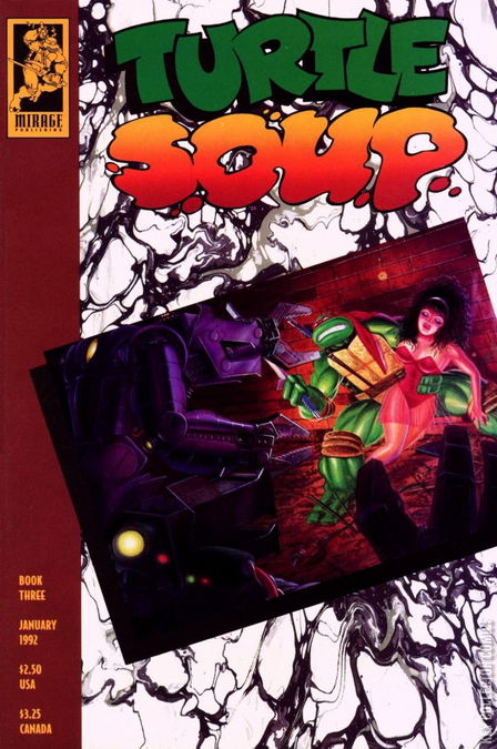Anthology book with stories by various creators. Contains: Viceroy - Viceroy and his pals get kidnapped by and evil baby mastermind. Bearing the Burden - The turtles face one of their biggest challenges as of yet... Turtles Attack part 3 - The turtles have to face down yet another menace from another time. Sweat, Sweat, Sweet Renet - Renet climbs a mountain. Ring of Death - The turtles rescue Casey Jones from a street gang. Crack in a Hard Heart - Michaelangelo tracks down Raphael and helps him through a tough time.