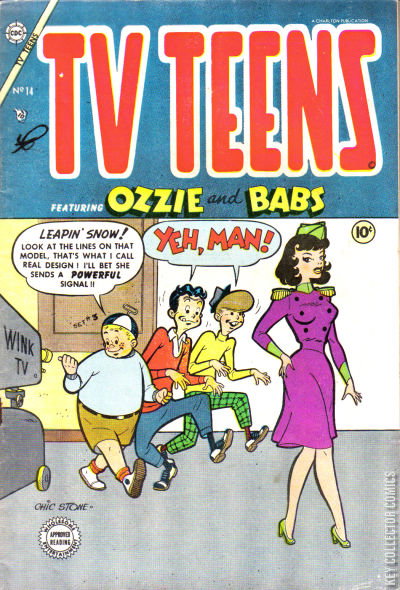 Home / Charlton / TV Teens / TV Teens #1 (14) Charlton Released February 1954 TV Teens #1 (14) Add to Collection Want It Synopsis No synopsis available. Issue 1 of 13 Add to Collection Buy it on eBay Buy on eBay Low $25 Mid $75 High $250 Synopsis No synopsis available. Details Series TV Teens Cover Date February 1954 Pages 36 UPC N/A Cover Price $0.10 Final Order Cutoff N/A Creators No creators listed. Price Guide Log in or subscribe to access detailed graded price information and market insights. Log In Subscribe
