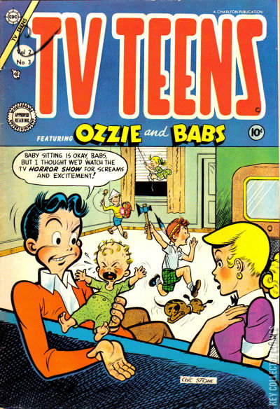 Home / Charlton / TV Teens / TV Teens #3 Charlton Released June 1954 TV Teens #3 Add to Collection Want It Synopsis No synopsis available. Issue 3 of 13 Add to Collection Buy it on eBay Buy on eBay Low $25 Mid $75 High $250 Synopsis No synopsis available. Details Series TV Teens Cover Date June 1954 Pages 36 UPC N/A Cover Price $0.10 Final Order Cutoff N/A Creators No creators listed. Price Guide Log in or subscribe to access detailed graded price information and market insights. Log In Subscribe