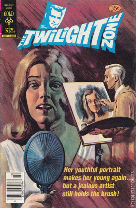 Cover code: 90016-810. 'Headed For CAT-astrophe' - With the death of his Aunt, Wilton Baines is about to become a multi-millionaire. But, before he can start enjoying his wealth, he must first settle a debt with some-one. 'Nostalgia Trip' - On a business trip Dennis Harper finds himself traveling along a turnpike that by-passes his old hometown! Curiosity and sentiment cause him to make the turn that leads him right smack into... the Twilight Zone. 'Cover Artist' - Her youthful portrait makes her young again... but a jealous artist still holds the brush!
