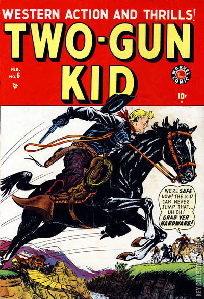 Trail of the Owl-Hooter: The Two-Gun Kid / comic story / 4 pages Trouble by the Gallon!: The Two-Gun Kid / comic story / 7 pages Prairie Fire: text story / 2 pages Showdown on the Sonoma Stage: Tex Taylor / comic story / 5 pages Marvel Comics Group: text article / 1 page: Editorial disputing Dr. Wertham's article in the Saturday Review of Literature. Death Rides the Range!: The Two-Gun Kid / comic story / 6 pages