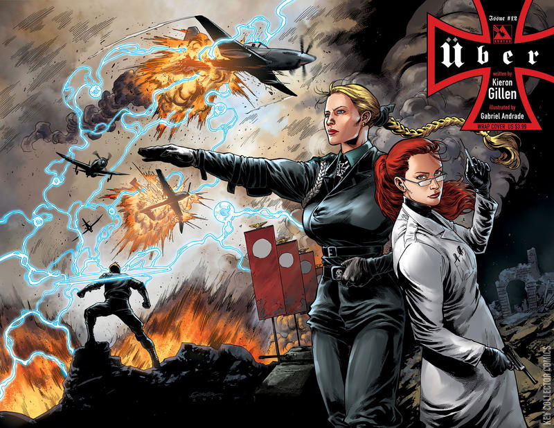 KIERON GILLEN has changed the face of war comics forever with the introduction of Uber. After the World-changing events of the previous issue, everything is different. As the true power of the Battleships is just settling in, Uber Year II begins with a deeper look at some of the players left standing. This arc of unthinkable atrocities is illustrated by GABRIEL (Ferals) ANDRADE. Available with Regular or Wraparound cover by Gabriel Andrade, Propaganda Poster cover by Michael Dipascale, and a special Blitzkrieg Incentive cover by Andrade
