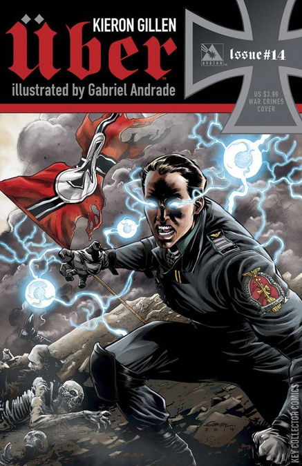 KIERON GILLEN and GABRIEL ANDRADE have brought an incredible visceral bloody misery to the pages of 'Uber Year II.' The Russians have a monster. Katyusha has activated and appears to be Battleship class. But she was already a wild card, uncontrollable and unstable. How can they hope to base their military survival upon the shoulders of a psychotic soldier? The German Ubers continue to push their advantage in the world theatre and the ground quakes from their titanic powers. Casualties continue to mount in a conflict that is quickly sending the world to the brink of utter destruction. Available with Regular, War Crimes, and Wraparound covers by Gabriel Andrade, Propaganda Poster cover by Michael Dipascale, and a special Blitzkrieg Incentive cover also by Andrade