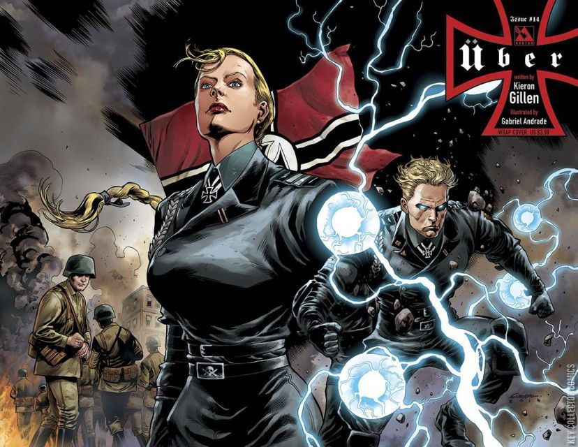 KIERON GILLEN and GABRIEL ANDRADE have brought an incredible visceral bloody misery to the pages of 'Uber Year II.' The Russians have a monster. Katyusha has activated and appears to be Battleship class. But she was already a wild card, uncontrollable and unstable. How can they hope to base their military survival upon the shoulders of a psychotic soldier? The German Ubers continue to push their advantage in the world theatre and the ground quakes from their titanic powers. Casualties continue to mount in a conflict that is quickly sending the world to the brink of utter destruction. Available with Regular, War Crimes, and Wraparound covers by Gabriel Andrade, Propaganda Poster cover by Michael Dipascale, and a special Blitzkrieg Incentive cover also by Andrade