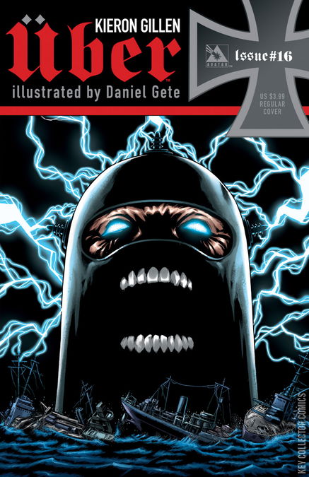 KIERON GILLEN continues his tour-de-force masterpiece of war! With the change in naval power, and new abilities unearthed, the arms race for better Ubers is on. With Sieglinde on the sidelines and recovering, the Nazi effort is having to change focus, with horrific results. Available with Regular, War Crimes, and Wraparound covers by Daniel Gete, Propaganda Poster cover by Michael Dipascale, and a special Blitzkrieg Incentive cover also by Gete.