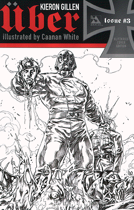 KIERON GILLEN's Uber is winning legions of fans with its unique mix of reality based events and staggeringly brutal superhuman violence. The race is on for the allies to obtain their own super powered soldiers. But the insanity brewing under Hitler's leadership has the Third Reich striking back, determined that if they can't win the war, they can at least bring everyone down with them. And his first Uber led strike will lay Paris to waste. Available with Regular or Wraparound cover by Caanan White, Propaganda Poster cover by Michael Dipascale, and a special Blitzkrieg Incentive cover by Caanan White