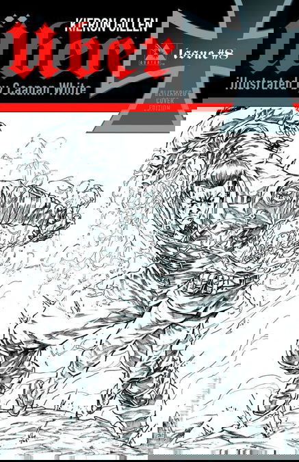 The Pacific Theater of war has changed dramatically with the deployment of Japanese super soldiers. Their use of this new technology alongside their Kamikaze terror strategy is starting to turn the tides of Allied power on the seas. Join KIERON GILLEN in an epic tale of the evolution of horror in World War II with the arms race now focused upon developing super human warriors. Is there an answer to the misery of war that will allow for a victor or will both sides be devastated by the amplified violence and destruction? Available with Regular or Wraparound cover by Caanan White, Propaganda Poster cover by Michael Dipascale, and a special Blitzkrieg Incentive cover by Caanan White