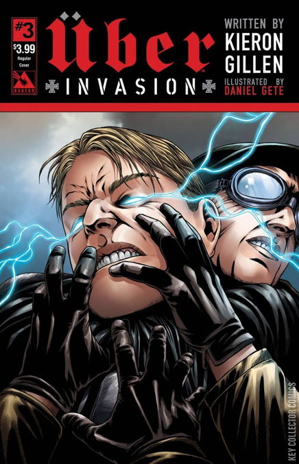 The USA is on fire. Germany's master plan has struck at the very heart of the remaining Allied power. And now as the West burns alongside Europe, hope that this miserable conflict will end fades away. It seems that global dominance is within the reach of the Nazis. Can anyone turn the tides or is this the final wheezing gasp of a world on the precipice of expiring? Available with Regular, Wraparound, War Crimes, and Blitzkrieg covers by series artist Daniel Gete, a painted Propaganda Poster cover, and a limited VIP Premium cover by Gabriel Andrade that is limited to 500 copies!