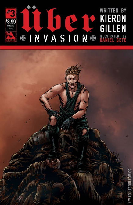 The USA is on fire. Germany's master plan has struck at the very heart of the remaining Allied power. And now as the West burns alongside Europe, hope that this miserable conflict will end fades away. It seems that global dominance is within the reach of the Nazis. Can anyone turn the tides or is this the final wheezing gasp of a world on the precipice of expiring? Available with Regular, Wraparound, War Crimes, and Blitzkrieg covers by series artist Daniel Gete, a painted Propaganda Poster cover, and a limited VIP Premium cover by Gabriel Andrade that is limited to 500 copies!