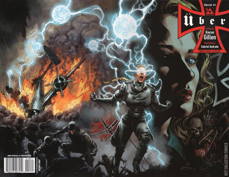 KIERON GILLEN digs deep into the origins of Uber with this all-new super-size Special! For the first time ever, he is unveiling the origin and first missions of Sieglinde and the German Battleships illustrated by GABRIEL ANDRADE! The German war machine has been developing the most powerful weapons ever fashioned. Their Battleship class Ubers are like living atom bombs annihilating every obstacle in their paths. But they were once humans, and it takes more than power to make a monster, so what could have forged such cold, murderous beasts? Available with Regular or Wraparound cover by Caanan White, Propaganda Poster cover by Michael Dipascale, a Blitzkrieg Incentive cover by Caanan White, and a special commemorative Three Objectives set of three books that is limited to just 500 sets!
