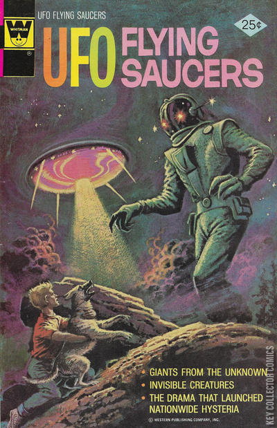 Cover code: 90259-502 The Virginia Giant!!!, 6 pages: While on a camping trip a young boy and his dog see a giant emerge from a UFO. Escape, 2 pages Who Flies the Saucers?, 2 pages The Invisible Thing!, 3 pages The Maury Island Mystery, 6 pages UFO Casebook, 2 pages The War of the Worlds, 4 pages: The story of Orson Welles' radio broadcast and the panic that followed.