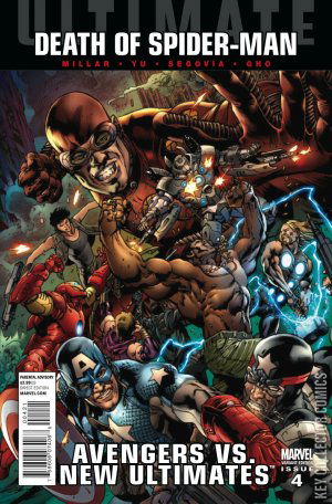 PART 4 A squad of S.H.I.E.L.D. agents arrive at the bridge and, during the momentary confusion caused by Spider-Man's appearance, shoot and attempt to apprehend Fury. Filled with remorse, Frank begs the agents to "punish him" for shooting an innocent kid; he is then knocked out by one of the agents. Captain America promises Peter that his wound is not fatal, and commends him for taking a bullet for him without a second thought, stating that when he grows up Peter will be the best out of all of them. War Machine then arrives and blows up the bridge, causing everyone but Spider-Man, who uses his ability to stick to surfaces, to fall into the water below. Thor then arrives and attempts to rescue them, damaging War Machine in the process. Blade manages to take down Black Widow, only to be severely wounded himself by Iron Man, who was unaware that Blade was not actually super-powered. Carol Danvers calls for backup when she is hit by a police cruiser. While Nick Fury is in custody and Carol Danvers is taken to a S.H.I.E.L.D. hospital, the leadership of S.H.I.E.L.D. is given to Gregory Stark by the President of the United States. Gregory then takes Fury into the Helicarrier U.S.S. Jimmy Carter where he reveals to him that he was the one who pitted the Ultimates against the Avengers. He in fact was using the smuggled Super-Soldiers to supply the rebels of rogue states to help the Pro-Democracy Forces and to fuel his ambitious agenda. He then has his men shoot Fury and leave him for dead.