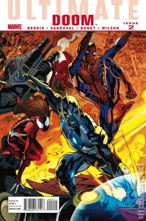 ULTIMATE DOOM PART 2 As Susan Storm is trying to be revived by her doctors, she dreams of her previous time with Reed Richards picnicking on top of the Baxter Building. Reed shares his thoughts with Susan that he doesn't "like this world". He elaborates that he thinks on planning to visit other dimensions and finding a perfect world or a world to be perfected, and tells her that he doesn't feel he and his friends belong in that world and wants to find one they "can make [their] own." Susan is revived and in the process, creates a force-field around her. Ben Grimm enters the field with his powers to calm her down and a deeply upset Susan tells him and everyone that they need to evacuate the Triskelion. At Roxxon Industries, Dr. Octopus explains to the Brain Trust about Jessica Drew and her cloning origins, and tells that her presence is unrelated to the attack on Roxxon and that her purpose here was for vengeance. Suddenly, Spider-Man appears before them and subdues Octopus and the Brain Trust with his webs. Samuel Sterns, transforming into his Hulk-like form, breaks free and attacks Spider-Man as a freed Jessica proceeds to beat up Dr. Octopus. Spider-Man shortly defeats Sterns and stops Jessica from doing anything further on Dr. Octopus before escaping out of Roxxon. The duo land on a rooftop where Jessica hugs Spider-Man and thanks him for saving her and stopping her from seriously harming Octopus. Thereafter, they see Roxxon is attacked again by the same organic entity which completely crushes the entire building. Back at the Triskelion, the building's personnel is being evacuated as Susan, Johnny, Ben, Nick Fury, Carol Danvers, Nova, and Mahr Vehl are at the Triskelion's database where Susan needs to access files on Reed and contact Tony Stark. Danvers informs Susan that she and S.H.I.E.L.D. doesn't have the information on Reed, but Fury reveals that he has secret files on him and the entire Baxter Building. Susan then accesses the files and reveals that it contains untold catalogs of different parallel dimensions. Johnny ponders if it is really Reed who is doing this, to which his sister replies it is indeed him. Susan then requests Mahr Vehl in needing blood or urine samples from him, as his physiology was corrupted by Reed's dimensional shift, which she believes contains biological evidence that would lead to Reeds' whereabouts. However, Mahr Vehl is reticent to give her what see needs because as a Kree military attache, allowing access to his biological engineering breaks strict military codes. Fury then points his pistol at Mahr Vehl's head to force him to reconsider. The building then experiences a large tremor which is the sign of Reed's attack. Susan then proceeds to send Reed's information to Tony Stark and the Ultimates as the Triskelion's infrastructure collapses around her and her friends. Finally, the Triskelion explodes.