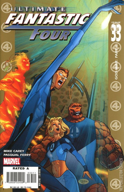 GOD WAR PART 1 Reed Richards and Susan Storm are shopping at a cosmetic store. Suddenly a group of super beings, known as Seed Nineteen, teleported into the midst of the store and having been escaping from their enemies. The group's leader, Threshold, is confuse as to why they are lead to Earth by a being called Seed. Among the group, the team's sentient vehicle Sky-Eater is unconscious (i.e. immobile) and a man called Tesseract I seriously injured. The group are extremely concern of the latter and are encountered by a gun-wielding security officer. However, Threshold easily manage to absorb the officer's bullets and Vykni conjure and merge the debris of the store into a giant organism and allows to attack the officer. Fortunately Sue save the officer, and Reed easily cut the organism horizontally in half. But the two are quickly defeated by Dreamcatcher and Threshold. As the New York City Police arrived on the scene, Threshold have Dreamcatcher cloak the team in human disguises. Force to abandon Sky-Eater, Seed Sixteen then easily walk out of the scene. As they walk the city streets, Vykni finds the city and its people odd since they are coordinated to a lesser known dimension due to previous circumstances, while the group are concern of Tesseract and especially Sky-Eater. The group then find their way to Central Park for a clearing zone to establish a beacon to their home dimension; however, Threshold suddenly discover that they are trapped on Earth. Back at the cosmetic store, Lieutenant Lumpkin and his troops arrives and find Reed and Sue. The two explain what has happened to Lumpkin and Sue strongly suggest of confiscating Sky-Eater. Outside of the store, the soldiers are transporting the vehicle and Reed discovers the Seed lying on the ground. In Central Park, Brute is dismayed to learn from Threshold that she has lost Seed and without it they cannot return home. The team then put Tesseract in a clearing as Vykni transforms the nearby trees into sentient guardians. Threshold then orders Vykni to stay with Sky-Eater while she and the others attempt to recover the Seed. At the Baxter Building, Reeds relates to Johnny Storm and Benjamin Grimm of the encounter with Seed Nineteen as he studies the Seed. Meanwhile, Sue and her father Dr. Franklin Storm examines Sky-Eater. Sue explains to her father about the vehicle being alive giving that it is photosynthesizing, but reveals that it is also dying if not treated soon. Some blocks away, Dreamcatcher reveals to Seed Nineteen that she has located the Seed in the Baxter Building. Reed is trying to communicate with the Seed. Suddenly, the Seed emits a bright light that engulfs Reed. At the bottom floor of the building, Seed Nineteen have bypass the building's security and are about to utilize the elevator. Ben and Johnny overhears the building's alarms and investigate what is happening as they await side-by-side with Lumpkin and his men for Seed Nineteen. As the elevator opens, they find them disguise as children. Not realizing who he is dealing with, Johnny approach Fountain and greets him. Once upon touching Johnny, Fountain cause him to burst him into flame in which Johnny actually feels absolute pain from his own fire.