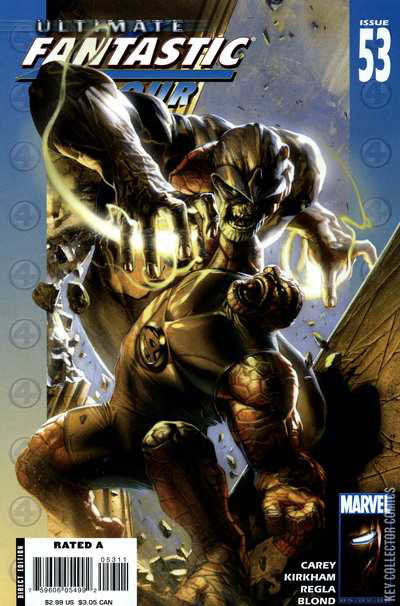FOUR CUBED PART 4 Thanos has conquered Halycon and now pursues his conquest of Earth beginning in Manhattan. Sue, Johnny, the Ultimates, and other heroes from earth, are under the control of the Cosmic Cube and serve him. Atrea has befriended Ben and wants to stop her father. They find Reed's body and determines that, (just prior to his defeat by Thanos and losing the Cube), he had turned himself into a spirit like Dreamcatcher, but was still trapped inside his altered but seemingly dead body. With her technology, Atrea frees Reed and he immediately begins to get back to work. The three transport to Manhattan. Reed asks Ben to distract Thanos, and despite Atrea's objections that Ben will martyr himself, the Thing agrees for the sake of his friends. Atrea joins Ben and they distract Thanos. Reed is able to free Johnny and Sue from Thanos' thrall and they all join in the attack. Thanos quickly defeats them and grips Reed and tells him he will be tortured for centuries. Reed baits Thanos into stating his wish: Death. When Thanos does so, the Cube kills him. Reed explains that he had put a "cut out" into his designed Cosmic Cube which made Thanos' overt wishes come true. Basically, he explains Thanos was given a loaded gun and he blew his head off. Reed restores Earth-1610 as it was previously. Reed later drops the Cube through a portal of time and space, where it again falls into the hands of a young Thanos.