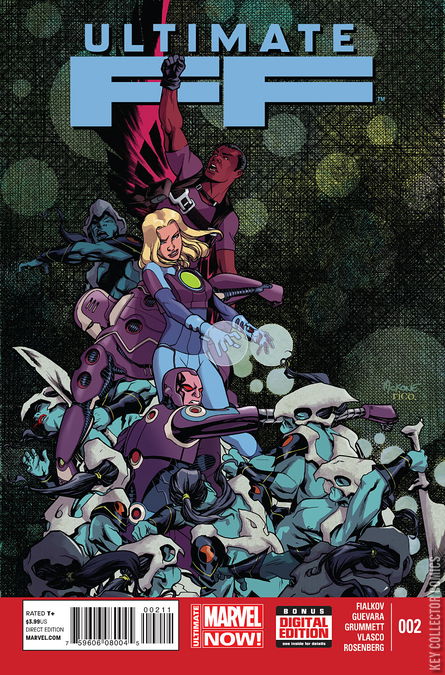 PALACE OF THE BRINE PART 1 The Future Foundation is sent to investigate the underwater city of Lemuria, which is described by Phil Coulson as a "underwater country club for the filthy rich" and funded by the Kratos Club in which Iron Man was previously acquainted. There are 153 people inhabiting the city and have mysteriously disappeared. Prior to their disappearance, Machine Man had registered a massive surge of transdimensional energy. After docking their submarine, Iron Man detect life signs below them. Doom takes point and senses something behind a door. The door bursts open and out comes Namor, who immediately attacks Doom given that he had imprisoned him. Doom doesn't seem to acknowledge his previous encounter with Namor. Susan restrains Doom and Namor and ordering them to calm down. They consent. Their fight however had caused significant damages to the docking tunnel, forcing the FF and Namor to escape into the city proper and their access to the submarine cut off. As Susan contacts Coulson on their situation, Namor continues where he left off in finding the people who have taken him prisoner in Lemuria. Susan assigns Falcon to find out what is happening on topside and making sure that there aren't any structural damages, Iron Man and Doom to hack Lemuria's computers while she accompany Namor to find those life signs. On the surface, Coulson and Machine Man digest on what they gathered from Susan. They know of Namor to be an exiled ruler of the Atlantean empire and held in prison until his release by Dr. Mary Storm, and his attempt to flood the American eastern seaboard. Dr. Mary Storm was declared missing following the Ultimatum Wave. Machine Man suggest of calling Susan's brother Jonathan for any leads. Just then Machine Man detects more life signs appearing on the monitors numbering within a hundred. Namor discuss with Susan about Doom. He is confused of how Doom is currently alive as he saw his death at the hands of Benjamin Grimm. Before Susan could question him, Namor senses something very familiar and promptly dashes off. Iron Man and Doom talk about what Namor said to the latter about watching him die. Doom is puzzled by Namor's statement to which Iron Man recalled that he went into another universe to save their universe and returned to kill everyone in the Ultimatum event. Doom profess that it wasn't him and conclude that it was an impostor who committed those acts. Iron Man and Falcon find more life signs and fluctuation in the dimensional rift, which Falcon theorize that the missing inhabitants are trapped in between dimensions. Susan calls to the others that she and Namor has found something that she needs their help. They are confronted by Atlantean soldiers, who are not too pleased to see Namor and identified him as the betrayer. Susan stalls the Atlanteans with her force-fields and urging Namor to get the others for help. Namor reluctantly does so but only to encounter more Atlantean soldiers. Doom, Iron Man, and Falcon have arrive in time. Iron Man analyzed the Atlanteans to be from another universe, specifically Universe-14727. The Atlanteans overwhelms the FF and Susan's shields finally breaks. But the Atlanteans are then ordered to be stop by their leader, Queen Namora, who commands her followers to bring her "ex-husband" and his companions before her while she personally dealt with Susan, whom she presumes her to be Namor's "concubine."