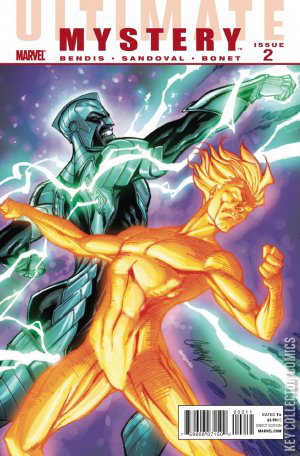 ULTIMATE MYSTERY PART 3 Wendell Vaughn informs Carol Danvers on the present situation at Project Pegasus where Mahr Vehl is talking with Rick Jones while flying above the facility. Rick tries to explain who he is to Mahr Vehl. But suddenly, Mahr Vehl grasps his chest and says that he is "compromised". He changes into a monstrous feral being and immediately attacks Project Pegasus. Meanwhile in New York, Jessica Drew infiltrates the Roxxon Corporation by posing as a hired employee under the alias Dr. Julia Carpenter. At the Baxter Building, Ben Grimm, Susan and Johnny Storm and a disguised Nick Fury investigate the site of the attack. Susan finds some residue from the entity that attacked the building. She believes that it appeared from some sort of dimensional teleportation. Another peculiarity Sue notes is that the entity seemed to grow on contact and then lost the hold on its form, causing it to fall apart before she and the other heroes could stop it. Susan theorizes that the being may have appeared by growing out of technology. Suddenly, Rick Jones teleport himself and a mutated Mahr Vehl to the Baxter Building - as Rick is unable to fight alone against Mahr Vehl - he brings the mutated Mahr Vehl to the Baxter Building where Ben Grimm immediately engages him with his new powers.