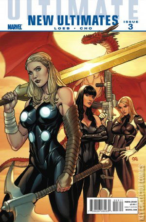 LIES Valkyrie reflects on her life from the start. For the past true years, her life's been nothing but a lie, literally and figuratively. Eventually, she met a man named Gunner Golmen, who promised that he could make her dreams come true. But "Golmen" was in fact Loki. In the present, Loki and his horde of demons are strolling through New York City, the Ultimates hung by their limbs on a towed double-decker bus. However, Carol Danvers, who was not actually mind-controlled, whispers to Hawkeye that she had in fact fired blanks into his face. She slips him pieces of Captain America's shield into his hands so he could cut the ropes and advises that he hit her as hard as he can to make it look good; Hawkeye obliges. Next, tear gas grenades are thrown. Out of the gas leaps the Black Panther, who frees Cap while the sabertooth tigers pounce on Zarda so Ka-Zar and Shanna could free Iron Man. As the Giant-Men carry the Ultimates away, Hawkeye takes a grenade from Danvers' belt and throws it at Zarda. Surviving the blast, Zarda swears revenge. The Enchantress calms her down, telling her that it won't matter what hole the Ultimates scurry down. In Valhalla, Thor demands that Hela releases him and allows him to return to Earth, having fulfilled his end of the bargain. Hela acknowledges that, but states that according to Odin's laws, another must die to take his place, if he is to leave. Enraged, Thor declares that it will be her death that'll release him. Hela turns around, revealing that she is pregnant, asking if he would kill his unborn son. Perplexed, Thor asks how could this have happened, as they were together last night. Hela answers that time passes differently in Valhalla. So for every minute on Earth, he must've spend centuries in Valhalla. Back at the Triskelion, as Iron Man is being treated, Hawkeye, up in the observation room with Danvers, asks how she broke the Enchantress' spell. The answers is that her eyes are equipped with night vision contact lenses. When she blinked in the bright-lit corridor the Enchantress found her in, her vision turned white, rendering her immune to her eye-contact magic. Iron Man then interrupts their conversation, reminding that they got a city to save. The Ultimates then arm up for battle. Hawkeye is able to shoot Enchantress through the chest, breaking her spell on Valkyrie. Realizing what she had done, she springs to attack Loki, but he blocks her blow with Mjolnir. Knocking her sword out of her hand, he uses it to impale her. Cap comes rushing to Valkyrie's side, trying to offer aide. She refuses his help, stating that "he" is coming. Rain and lightning start, as Thor appears atop the Empire State Building, shouting to Loki that there will be blood.