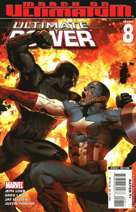 ULTIMATE POWER PART 8 The Earth-712 Squadron Supreme attacks the Ultimate force, with all sides clearly confused about the presence of more doppelgangers in Earth-31916. On the street, Thor defeats Hyperion and prepares to rejoin the melee when he is stopped by Dr. Spectrum, who reasons with Thor and asks him to help seek out the truth behind the entire affair. Dr. Doom defeats Iron Man and is attacked by the Thing, who rips Doom apart and reveals him as a Doombot. As Squadron Supreme (Earth-31916) attacks Squadron Supreme (Earth-712), Nighthawk approaches Captain America, mistaking him for the Captain America of Earth-616. Scarlet Witch reveals that her powers have resulted in this unusual doppelganger phenomenon. On the Helicarrier, Nick Fury orders Spider-Man to oversee the Hulk and act as his "conscience" as Hulk leaps into the fray.