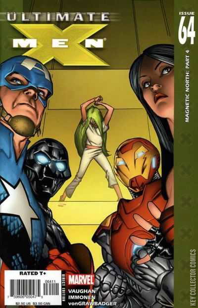 "Magnetic North Part 4" At the Academy of Tomorrow, Doug Ramsey alerts his instructor, Emma Frost, that he made a discovery on the security footage Lorna's loss of control in the city. Frost tells Ramsey that she has looked at that footage over and over and have not found anything that proves Lorna's innocence. Ramsey tells his teacher that while there was nothing off about the footage during the attack, three days before there were a couple of people planting a machine in the area. Ramsey recognizes one of the culprits, identifying him as Forge, one of Magneto's lackeys. Frost jumps to action, calling Nick Fury, alerting him of Lorna's innocence. Thirty minutes before the discovery, Jean Grey, Colossus, and Ice Man are confronted by the Ultimates. The Ultimates tell the X-Men that the Triskelion is their jurisdiction, but Jean argues they have not stepped foot on the island in hopes of stopping Alex Summers before he reaches the Triskelion. The X-Men are looking to stop Alex before he is taken into custody without a trial as with Lorna. Quicksilver lets it slip that Lorna is in custody with Magneto, causing outrage from the X-Men, making Jean think Xavier is never telling the full story. Lorna defeats Magneto in chess, making Magneto proud that she has beaten him after only eleven games. Magneto stands up, revealing to Lorna that he means to leave this chamber. Magneto hopes that Lorna will join him on the outside, giving her a high position in his Brotherhood. Lorna does not follow, believing she needs to be held accountable for those people she hurt. Magneto gets angry, picking up a chair and walking towards the young mutant, knowing those protecting her are preoccupied. He swings the chair across her head, knocking her out. Outside, Captain America hears a sound that turns out to be the sonic boom of Northstar's mutant power. Quicksilver is the first to be taken out, knocking him flat on his back. Cap yells out orders to his fellow Ultimates, getting Iron Man to secure the perimeter and Widow to get the kids out of danger. Ice Man believes he has a lock on Northstar, firing a chill wave at the target but putting Captain America in ice instead. Wasp fights back, taking out Ice Man before Jean shuts her down. Scarlet Witch then gets rid of the psychic, seeing her as a thread, and transporting her to New Jersey. On the roof of the Triskelion, Forge gets cocky, surprised by finding no guards around to stop them from retrieving Magneto. Mystique sets him straight, knowing it may be a bit difficult but they do not have that much time to hang about. Colossus takes hold of Scarlet Witch, curious about what she did with Jean. Iron Man and Widow come to save the mutant but are stopped by Havok's blast, tearing apart their armor and knocking them out. Overhead, Angel and Dazzler fly above, noticing the explosion from Havok's power. Since they do not believe Havok is there but already in the Triskelion, they fly on ahead, discovering Forge and Mystique venturing into the building. Colossus holds Scarlet Witch, her struggling and telling her fellow mutants they should be prepared to be locked away for what they have done to the Ultimates. Havok and Northstar ask Colossus to join them, but before he can answer, Scarlet Witch charges up, making Havok take the defensive and blast both Colossus and Scarlet Witch. Mystique greets her love, going through the pleasantries they cycle through each time they meet. Mystique had no problems getting past the SHIELD agents but fears Fury has already called in reinforcements. Magneto picks up the unconscious Lorna, ready to escape from his imprisonment. Angel and Dazzler walk the halls of the Triskelion, meeting Storm's old foe Yuriko in her prison cell. Dazzler laughs at the prisoner, saying it sucks to be her before moving on. Before they can get far though, the building shakes, Dazzler feeling a tugging at her face before all her metal piercings get ripped out. The walls around them start to spark, Angel covering Dazzler. The lights are out, the cells are open, Angel and Dazzler realize Yuriko is standing outside of her cage repeating the line said seconds earlier by Dazzler. Yuriko extends her metal finger, striking Dazzler through the chest, Angel leaping to her rescue.