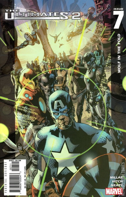 WOLF IN THE FOLD The Ultimates once again invade a third-world country, removing them of their protection and missiles. Thor, who is in the same cell as Banner once was, is talking to Tony Stark. Tony still believes Thor insane. Thor tells Tony to stop the Ultimates aggressive acts. He tells Tony that they have a traitor amongst the team, and they have one more chance before the other retaliates. Janet is now having an affair with Hank. Janet says Steve still acts like people did in the 40s. That night, Clint Barton is with his wife and kids in the kitchen. The doorbell rings. Clint's wife opens the door, expecting Scarlet Witch, but instead, a rifle aimed at her head. She is shot, killed. A bunch of men in suits with rifles crash into the kitchen from the windows. Two of the men go upstairs to get the children. Clint is shot. The men grab Clint's son. Clint kills the guards with kitchen appliances. As he holds his son, telling him to go to the neighbors house for help, blood splatters into Clint's face, and his son is dead. Someone enters, and Clint knows who it is. Bullet shells fly out of the figures gun.