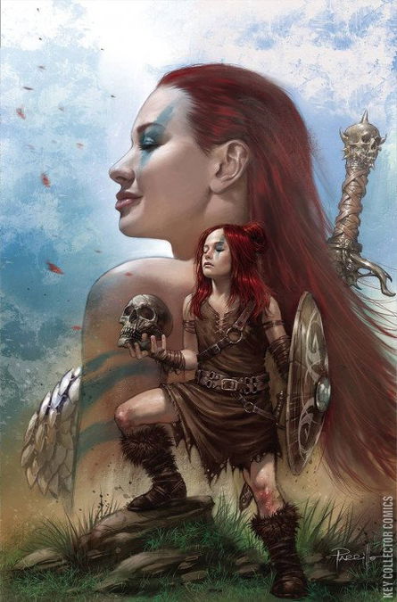 As we head toward the 50th anniversary of the She-Devil With a Sword in 2023, Dynamite Entertainment is proud to present a sweeping story of sword and sorcery and high adventure by writer Jim Zub (Conan the Barbarian, Dungeons & Dragons, Avengers) and artist Giovanni Valletta (John Wick, James Bond)! In this debut issue, Red Sonja carries a hazy vision that lurks just out of reach in her memories. The answer to that mysterious moment will unlock a journey of forbidden magic and searing steel as Sonja's past and present collide in a quest beyond anything our scarlet-haired hero has faced before!