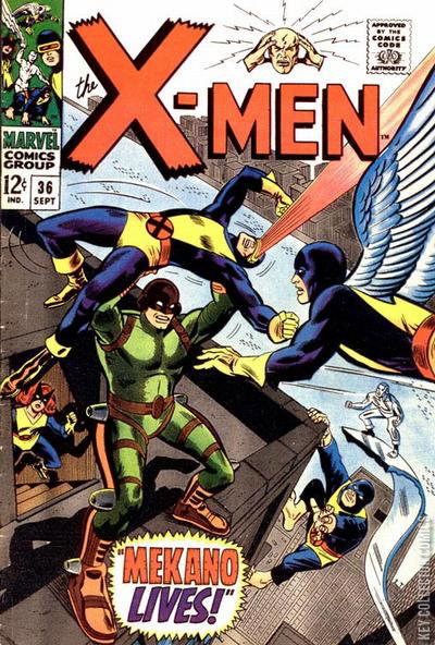The X-Men had finally discovered that Factor Three is in Europe, along with Professor X and probably Banshee. But since they have no money to fly to Europe, they try to work and win some by different ways.But while they try to make the money they encounter Mekano, a strange guy in a suit. After defeating him and saving the Central Library, they receive a reward from the Library owner - and Mekano's father - and finally can go to Europe.This issue is the first appearance of Changelling, as a member of Factor Three.