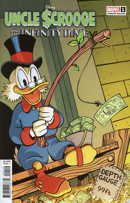 FOR THE FIRST TIME EVER, MARVEL AND DISNEY TEAM-UP TO BRING YOU THE STORY OF THE ¢ENTURY! It's the story you never expected! One of the greatest characters in the history of comics leaps into his most epic adventure yet, in the manner only MARVEL can deliver! When UNCLE SCROOGE'S fabled money bin gets stolen by a shocking culprit, the world's toughest duck must undertake a quest unlike any other, alongside a surprising array of allies: other versions of himself! An oversized special, from Marvel mainstay writer JASON AARON (THOR, AVENGERS) and a cadre of celebrated Scrooge artists! Also re-presenting the classic CHRISTMAS ON BEAR MOUNTAIN, the first appearance of Scrooge McDuck by the legendary DISNEY COMICS creator, CARL BARKS!