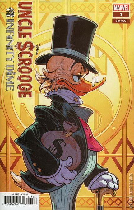 FOR THE FIRST TIME EVER, MARVEL AND DISNEY TEAM-UP TO BRING YOU THE STORY OF THE ¢ENTURY! It's the story you never expected! One of the greatest characters in the history of comics leaps into his most epic adventure yet, in the manner only MARVEL can deliver! When UNCLE SCROOGE'S fabled money bin gets stolen by a shocking culprit, the world's toughest duck must undertake a quest unlike any other, alongside a surprising array of allies: other versions of himself! An oversized special, from Marvel mainstay writer JASON AARON (THOR, AVENGERS) and a cadre of celebrated Scrooge artists! Also re-presenting the classic CHRISTMAS ON BEAR MOUNTAIN, the first appearance of Scrooge McDuck by the legendary DISNEY COMICS creator, CARL BARKS!