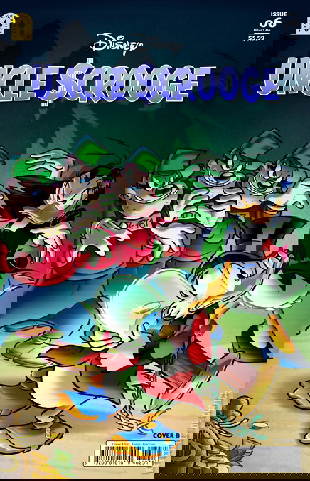Wave your black-magic wand—and watch your back! In “By Moonlight’s Blight,” Magica De Spell’s latest anti-Scrooge scheme calls for a dark crystal that will send Scrooge to the ends of the earth… but when spells get misspelled, Magica and Scrooge both end up on a dragon-ravaged desert island. Who beats who to escape first? Then, when the Beagle Boys try to “Make Money in Your Sleep,” Scrooge and Gyro Gearloose are the targets—but those get-rich dreams turn into nightmares!