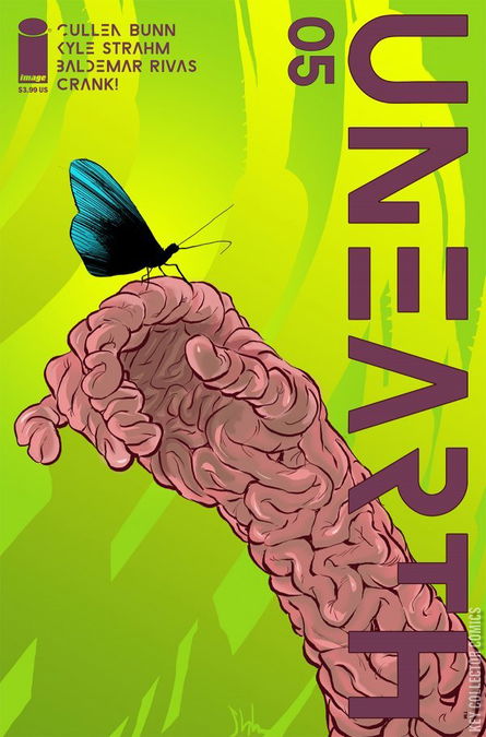 With the ultimate truth—and the ultimate goal—of the flesh-twisting disease revealed, nothing short of total annihilation can spare humanity from an ungodly fate. The Earth shakes. Humankind screams in horror. A call is made and a doomsday weapon is soon to be unleashed. Underground, the survivors of the American task force struggle to escape an unthinkable horror—but before they can emerge into the light, a terrible sacrifice must be made. And even that might not be enough to slake the hunger of the being that lurks below. The first story in the UNEARTH cycle from writers CULLEN BUNN (REGRESSION) and KYLE STRAHM (SPREAD) and artist BALDEMAR RIVAS comes to a close in a shocking fashion!