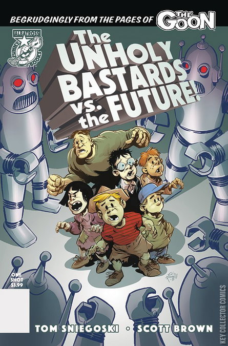 From the pages of The Goon comes those unloveable scamps, The Unholy Bastards! That's right! Smitty, Specs, Pee Wee, Charlene, Roscoe and Kid Gargantuan in an all-new standalone adventure! When they accidentally turn Old Rusty, the bike they'd assembled from pieces stolen off other bikes, into a time machine, the Bastards find themselves not just breaking the laws of decency, but also the laws of physics! And that doesn't even include the several misdemeanors involving killer robots!
