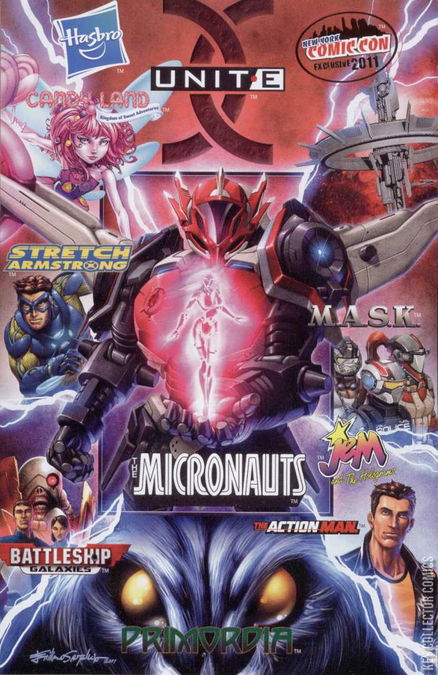 - One-shot story that incorporates the following Hasbro properties: Transformers, G.I. Joe, Micronauts, M.A.S.K., Primordia, Action Man, Stretch Armstrong, Dungeons & Dragons, Jem