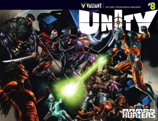 ARMOR HUNTERS descends on Valiant’s all-star superteam in an all-new story arc from New York Times best-selling writer Matt Kindt (Mind MGMT) and red-hot artist Stephen Segovia (Superior Carnage)! When an ultra-powerful threat from deep space begins brutalizing Earth, humanity’s first response is – who else? – the fearless team of heroes, soldiers, and short fuses called Unity! Now it’s down to Ninjak, Eternal Warrior and Livewire – plus some special surprise recruits – to lead the assault on the ARMOR HUNTERS’ frontline…even if they die trying!